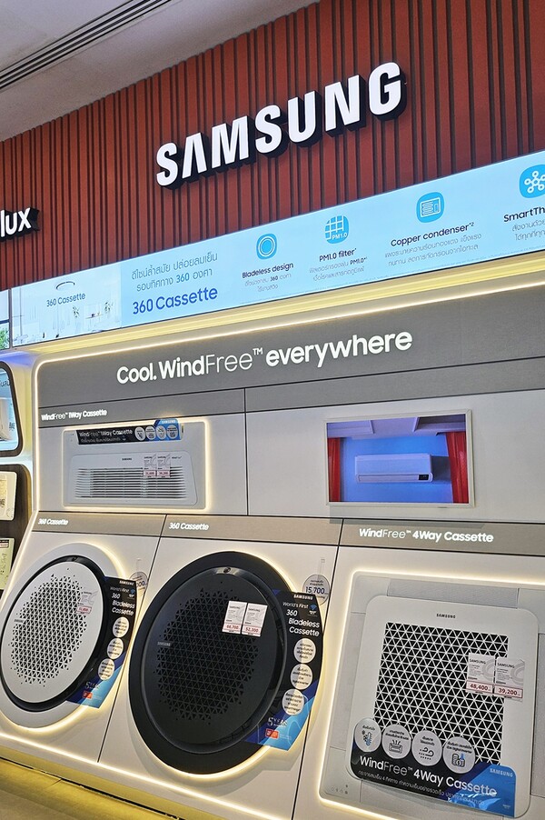 삼성전자는 공간과 목적에 따라 선택 가능한 다양한 에어컨 제품을 동남아 시장에 선보이고 있다. 판매하는 모델은 ▲단일 방향으로 공기를 내보내는 1Way 카세트 ▲네 방향으로 공기를 내보내는 4Way 카세트 ▲원형 패턴으로 전방위로 공기를 내뿜는 360 카세트 등이다.