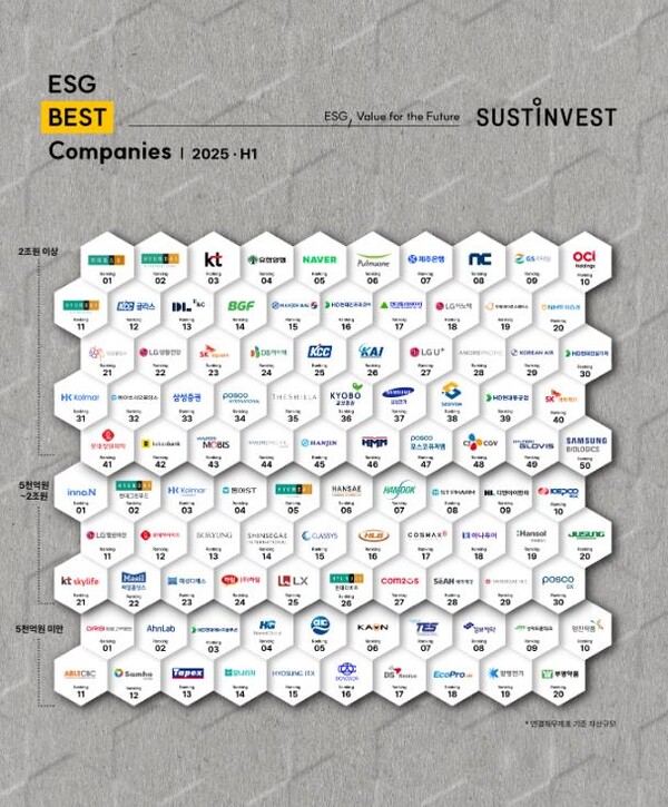 아울러 환경, 사회, 지배구조 전 영역에서 우수한 성과를 보인 상장사 100곳을 선정해 발표한다. 상장사 중 자산규모별로 2조원 이상 상장기업은 50곳, 5천억원 이상 2조원 미만 상장기업은 30곳, 5천억원 미만 상장기업은 20곳을 선정한다.