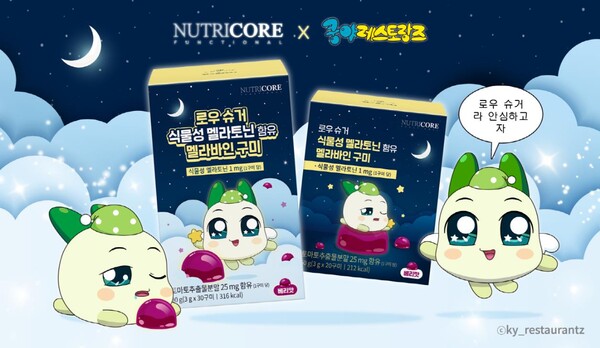 이번 콜라보를 통해 뉴트리코어 ‘로우 슈거 식물성 멜라토닌 함유 멜라바인 구미 패키지’에 쿵야 레스토랑즈의 아트웍이 반영된 신규 패키지를 선보이며 해당 패키지는 양파쿵야 인형 키링 1종이 포함된 구성이다. 관련 제품은 전국 올리브영 온라인몰과 카카오톡 선물하기에서 구매할 수 있다.
