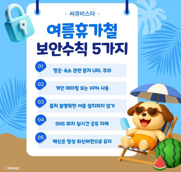 씨큐비스타는 휴가철 사이버 범죄 피해를 예방하기 위한 5가지 보안 수칙을 제안했다.