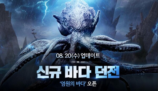 이번 업데이트를 통해 6개 서버가 매칭되는 신규 바다 던전 ‘염원의 바다’가 추가됐다. 해당 던전에서는 ▲신규 초승돌 ▲다후타의 인장 ▲흉물의 정수 등을 획득할 수 있다. '흉물의 정수'는 NPC를 통해 다른 보상으로 교환 가능하며, 매칭되는 던전마다 교환되는 '흉물의 정수'가 한계치에 도달하면 신규 보스 ‘심해의 크라켄’이 자동 소환된다. ‘심해의 크라켄’은 과부하·광분 기술을 활용하는 강력한 몬스터로, 전투 상황에 따라 피해를 줄이는 전략적 공략이 필요하다. 신규 해양 콘텐츠 추가에 맞춰 바다 장비 밸런스 조정 및 신규 컬렉션도 적용됐다.