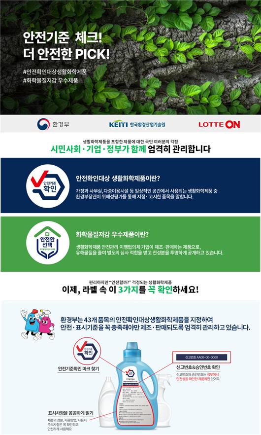 행사 기간 동안 소비자는 롯데온 기획전 누리집에서 생활화학제품 안전관리제도 안내와 행사 제품 정보를 확인하고, 20% 할인 쿠폰을 받아 제품을 구매할 수 있다.