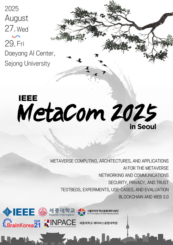 세종대학교(총장 엄종화)가 오는 8월 27일부터 29일까지 서울 세종대학교 캠퍼스에서 세계 최대 전기전자 학회인 IEEE(Institute of Electrical and Electronics Engineers)의 메타버스 플래그십 콘퍼런스 ‘IEEE MetaCom 2025’를 단독으로 개최한다.
