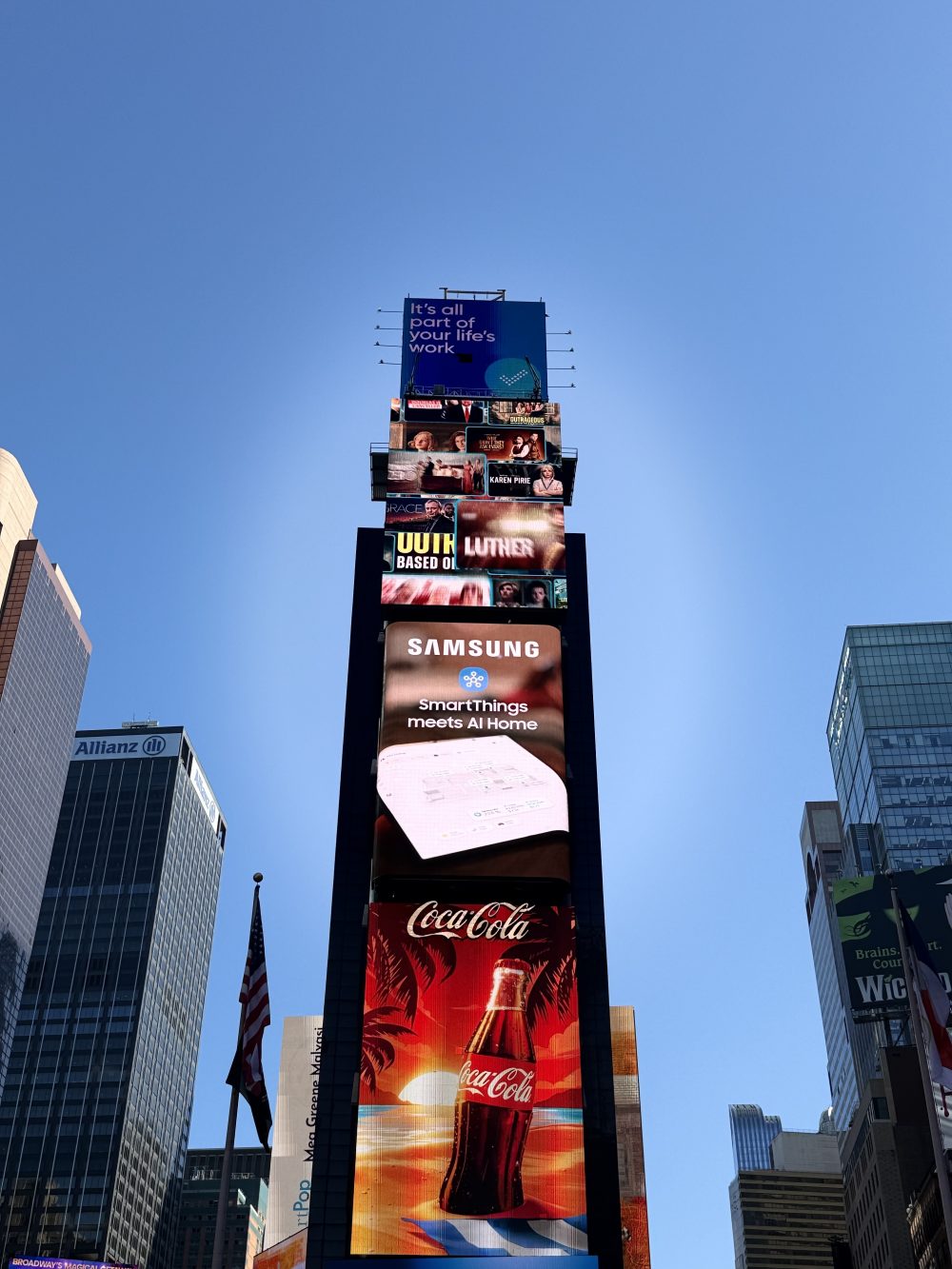 ▲삼성전자가 미국 뉴욕 타임스 스퀘어에서 진행 중인 ‘스마트싱스로 완성한 AI 홈’ 영상 캠페인