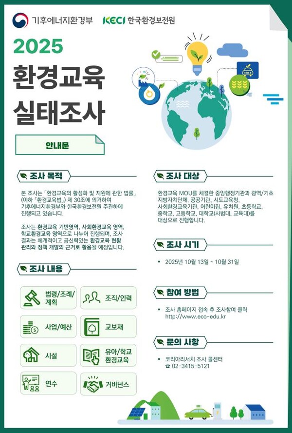 조사 결과는 2026년 2월 국가환경교육 통합플랫폼(www.keep.go.kr)과 국가통계포털(https://kosis.kr)을 통해 공개될 예정이다.