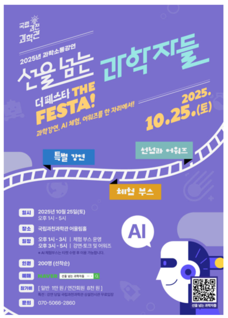 한형주 국립과천과학관장은 “이번 「선.넘.과 더 페스타」는 강연을 넘어 시민이 직접 체험하고 토론하는 참여형 과학소통 행사”라며 “인공지능 시대에 과학이 사회와 소통하는 방식을 새롭게 제시하는 계기가 될 것”이라고 말했다.