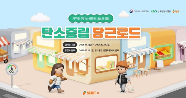 ‘탄소중립 당근로드’ 챌린지는 한국환경보전원이 운영 중인 ‘탄소중립 실천포털’에서 11월 7일부터 12월 14일까지 진행된다. 참여자는 ▲물품 나눔 ▲대중교통 이용 ▲포장재 절감 등 친환경 실천활동을 인증하면 도장을 받을 수 있으며, 특히 겨울철 기후적응에 도움이 되는 물품 나눔을 장려한다. 도장 개수 순으로 당첨자를 선정하고, 동점자는 추첨을 통해 경품을 제공한다.