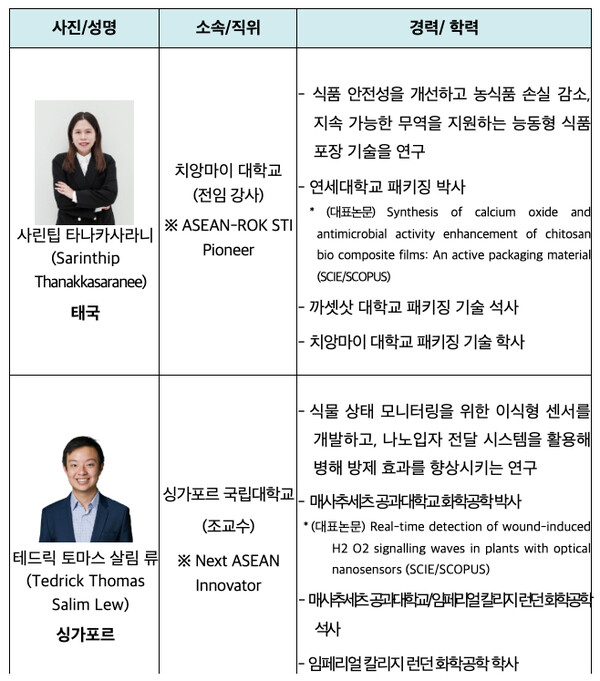 그 결과로 ▲개척자 상(Pioneer)에는 태국 치앙마이 대학교의 사린팁 타나카사라니 박사(Sarinthip Thanakkasaranee), ▲혁신자상(Innovator)에는 싱가포르 국립대학교의 테드릭 토마스 살림 류 교수(Tedrick Thomas Salim Lew)가 선정되었다. 수상자들에게는 부총리상과 상금 미화 1만 2천 달러가 수여될 예정이다.